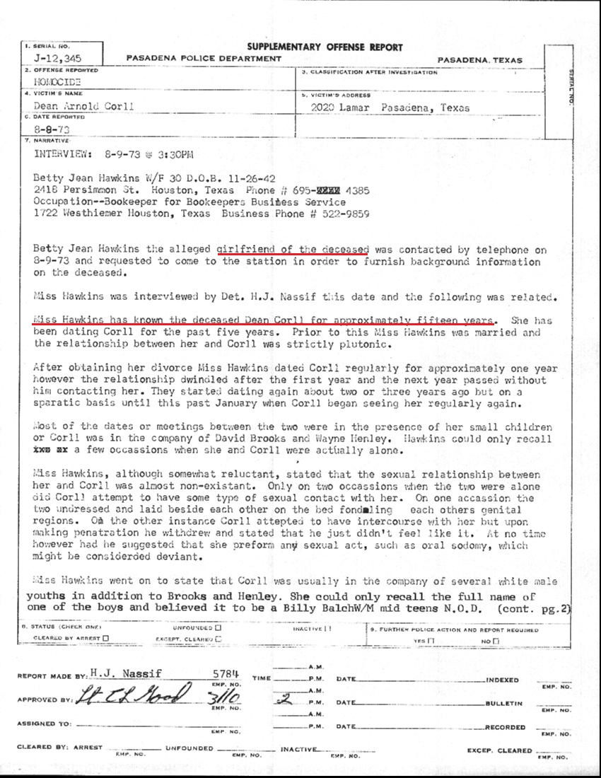 "From p.58 - mentions a letter sent by Air Force Sgt. Paul Gale in Guam dated 1973/08/11; claims that Corll picked up Gale 2 years prior from Pasadena High School using the name Ray Harrison"