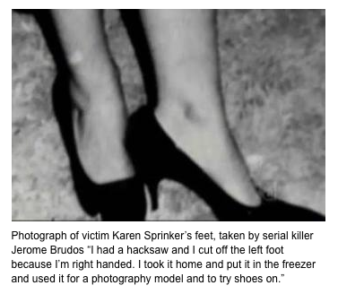 While incarcerated, Brudos had piles of women's shoe catalogues in his cell — he wrote to major companies asking for them — and claimed they were his substitute for pornography. He lodged countless appeals, including one in which he alleged that a photograph taken of him with one of his victim's corpses cannot prove his guilt, as it is not the body of a person he was convicted of killing.