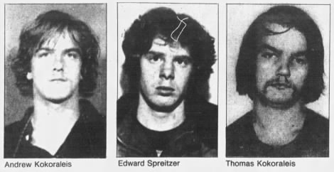 Eddie Spreitzer and Andy Kokoraleis, both teenagers who appeared to be the least culpable of the suspects, took the majority of the fall; both ultimately received death sentences. Eddie initially pled guilty to four counts of murder and one count of attempted murder and received four life sentences plus an additional 360 years. He was then indicted on additional charges and he went to trial, resulting in a death sentence. Andyâs first trial, in February 1985, resulted in a life sentence after he was found guilty of murder. Two years later, in a second trial, he was again found guilty. On April 30, 1987âWalpurgisnachtâthe presiding judge formally sentenced Andy Kokoraleis to death by execution.