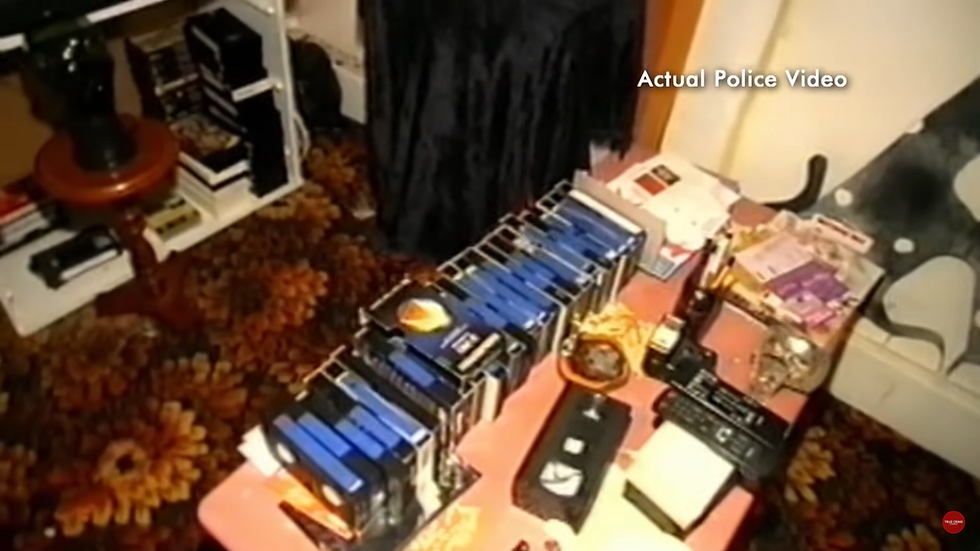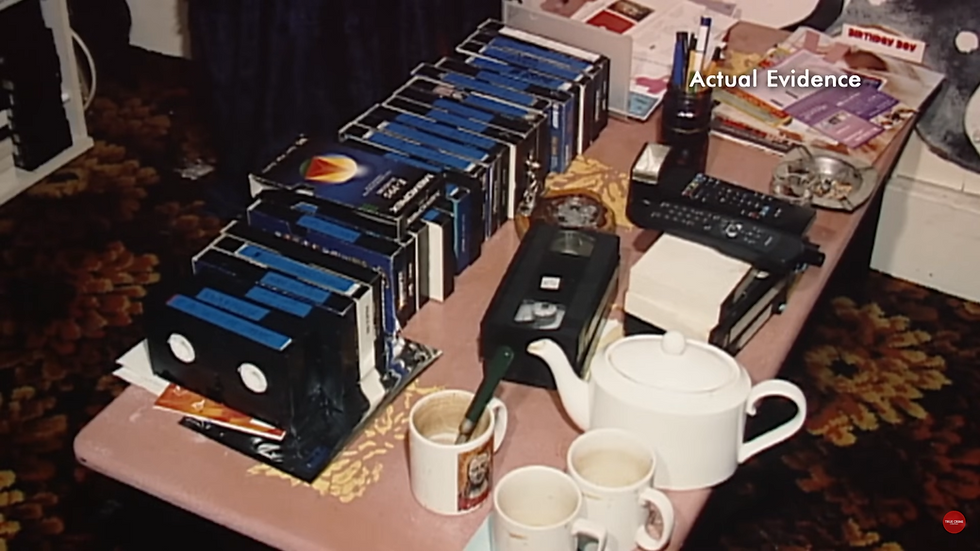 There was also a glass bottle on which he had written ‘Sally White RIP’ and a stack of porn films and videos.