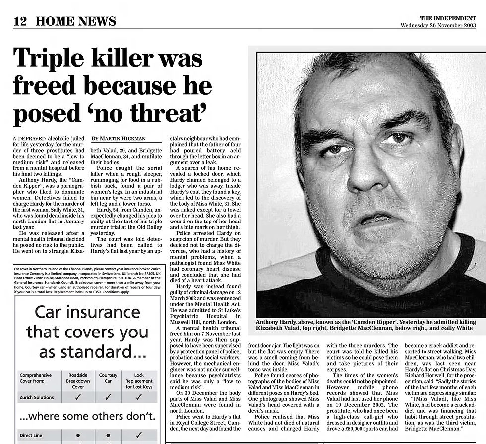 Anthony Hardy turned his flat into a satanic shrine to death as he brought the same terror to the Camden area of north London as Jack the Ripper had inflicted on the women of London’s Whitechapel over 100 years before.