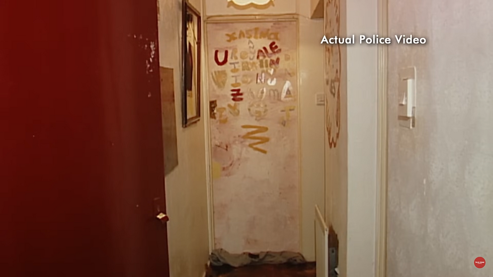 Police took seven weeks to search and examine the flat which was covered in cruciforms and weird satanic daubings.